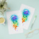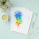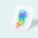 Large, iridescent, artistically drawn, bright jellyfish, with long tentacles on white, painted over with multicolored watercolor background. Rainbow jellyfish.
