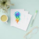 Large, iridescent, artistically drawn, bright jellyfish, with long tentacles on white, painted over with multicolored watercolor background. Rainbow jellyfish.