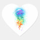 Large, iridescent, artistically drawn, bright jellyfish, with long tentacles on white, painted over with multicolored watercolor background. Rainbow jellyfish.