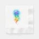 Large, iridescent, artistically drawn, bright jellyfish, with long tentacles on white, painted over with multicolored watercolor background. Rainbow jellyfish.