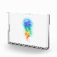 Large, iridescent, artistically drawn, bright jellyfish, with long tentacles on white, painted over with multicolored watercolor background. Rainbow jellyfish.