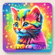 A captivating illustration of a playful kitten bathed in a vibrant rainbow of colours, set against a starry backdrop. This whimsical artwork is perfect for adding a touch of magic to any style (This Design Made With AI). Place Order Today and Embrace the Joy of Shopping!