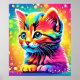 A captivating illustration of a playful kitten bathed in a vibrant rainbow of colours, set against a starry backdrop. This whimsical artwork is perfect for adding a touch of magic to any style (This Design Made With AI). Place Order Today and Embrace the Joy of Shopping!