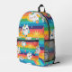 Lightweight and durable, our custom all-over-print Backpack is just what you need. The spacious interior is ideal for travel, school, gym, or any mobile storage need. Bring your stuff with you in style! Features Adjustable padded shoulder straps, two chambers on the inside for laptop storage, mesh side pockets and an identification label.