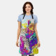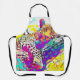 I love this apron and am so happy that I bought it. It's colors are beautiful--rose, soft greens, cream, white and it is whimsical with a nice rabbit and tea cup on it. The printing is excellent. The colors are vibrant and beautiful. I'm glad I purchased this. My adult niece wants it. But I'm keeping it for myself. Maybe I'll buy another one for her.