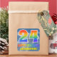 This exciting, fun, and eye-catching birthday-themed sticker design features a blue sky with clouds pattern background, a large number "24" and "HAPPY BIRTHDAY," both having a multicolored rainbow spectrum inspired gradient pattern, and a customisable name. Colourful and fun stickers like this might be used when wrapping presents being given in celebration of somebody’s 24th birthday. [~Z0000374]