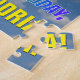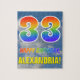 This exciting, fun, and vibrant birthday-themed puzzle design features a blue sky with clouds pattern background, a large number "33" and "HAPPY BIRTHDAY," both having a multicolored rainbow spectrum inspired gradient pattern, and a custom name. A caring, colourful, and customisable birthday puzzle like this might be a fun way to send a message in celebration of somebody’s thirty third birthday. [~Z0000375]