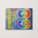 This fun, exciting, and eye-catching birthday-themed puzzle design features a cloudy blue sky pattern background, a large number "39" and "HAPPY BIRTHDAY," both having a multicolored rainbow spectrum inspired gradient pattern, and a personalised name. A colourful, happy, and editable birthday puzzle like this might be a fun way to send a birthday greeting in celebration of somebody’s thirty ninth birthday. [~Z0000375]