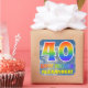 This exciting, vibrant, and eye-catching birthday-themed sticker design features a cloudy blue sky pattern background, a large number "40" and "HAPPY BIRTHDAY," both having a multicolored rainbow spectrum inspired gradient pattern, and a customisable name. Happy and colourful stickers like this might be a fun gift for somebody who is celebrating their fortieth birthday. [~Z0000374]