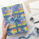 This eye-catching, exciting, and fun birthday-themed wrapping paper design features a cloudy blue sky pattern background, a large number "41" and "HAPPY BIRTHDAY," both having a multicolored rainbow spectrum inspired gradient pattern, and a personalised name. Birthday themed wrapping paper like this might be a fun way to wrap a gift or present being given to somebody who is celebrating their 41st birthday. [~Z0000372]