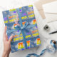 This exciting, eye-catching, and fun birthday-themed wrapping paper design features a blue sky with clouds pattern background, a large number "47" and "HAPPY BIRTHDAY," both having a multicolored rainbow spectrum inspired gradient pattern, and a personalised name. Wrapping paper like this might be used when giving a gift or present in honour of somebody’s 47th birthday. [~Z0000372]