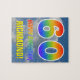 This exciting, fun, and eye-catching birthday-themed puzzle design features a cloudy blue sky pattern background, a large number "60" and "HAPPY BIRTHDAY," both having a multicolored rainbow spectrum inspired gradient pattern, and a custom name. A caring, colourful, and editable birthday puzzle like this might be a fun way to send a greeting in celebration of somebody’s sixtieth birthday. [~Z0000375]