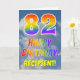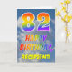 This fun and colourful 82nd birthday greeting card design features a representation of a cloudy blue sky, along with a large number "82" and the message "HAPPY BIRTHDAY," having a rainbow spectrum inspired gradient pattern colouring, on the front. The front also features the personalised name of the card’s recipient. The inside features a custom birthday greeting message, or could perhaps be cleared and left blank if a message is to be written by hand instead. A customisable birthday card like this might be a fun way to send a message in celebration of somebody’s eighty second birthday. [~Z0000371]