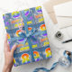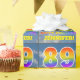 This vibrant, exciting, and fun birthday-themed wrapping paper design features a cloudy blue sky pattern background, a large number "89" and "HAPPY BIRTHDAY," both having a multicolored rainbow spectrum inspired gradient pattern, and an editable name. Birthday themed wrapping paper like this might be a fun way to wrap a gift or present being given to celebrate somebody’s 89th birthday. [~Z0000372]