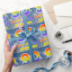 This exciting, fun, and eye-catching birthday-themed wrapping paper design features a cloudy blue sky pattern background, a large number "90" and "HAPPY BIRTHDAY," both having a multicolored rainbow spectrum inspired gradient pattern, and an editable name. Birthday themed wrapping paper like this might be a fun way to wrap a gift or present being given to somebody who is celebrating their 90th birthday. [~Z0000372]