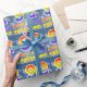 This eye-catching, vibrant, and exciting birthday-themed wrapping paper design features a blue sky with clouds pattern background, a large number "92" and "HAPPY BIRTHDAY," both having a multicolored rainbow spectrum inspired gradient pattern, and a custom name. Birthday themed wrapping paper like this might be a fun way to wrap a gift or present being given to somebody who is celebrating their ninety second birthday. [~Z0000372]