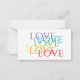 Send a greeting, or create an invitation with this RAINBOW LOVE 3.5"x2" flat card. The design is the word "LOVE", in rainbow colours, repeated six times, overlapped in a casually pleasing way. * Easily add a message on the back with Edit Design, and Add Text. (*Hint: Use rainbow coloured text, and the CINZEL font to match the front design.) Choose from different corner styles, and papers. * Other cards, and matching products are in the COLORS category of my shop. ** If you'd like to transfer this design to another product type, shape, or size, please check my shop first to see if I have one already done, because I'll have fiddled with it to make the design fit just right and it will save you the bother. Sometimes designs transfer ok, sometimes they don't. Just fyi.