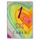 Painting is of concentric rainbow hearts. Words note "Table 1" with a flourish but can be personalised with your own words and messages. Create your own unique one-of-a-kind table card design by customising these template inspirational word angel table cards for your wedding, reception, or other personal event information.