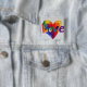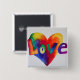 Watercolor painting of a rainbow heart with the word "Love" across the centre. This painting uses colour theory in matching opposite colours (red / green, orange / blue, yellow / purple) to create a dynamic colour contrasting shapes. This painting also comes in a version with a light layer the sprinkled colour glitter on top of the painting called "Love Rainbow Heart Glitter". Personalise Love art buttons or pins using the "Customise It" button. Make your own special love gifts with your own text or images. The love pin pendants are good for weddings, engagements, bridal showers, anniversaries, special occasions like new baby girl birth, and holidays like Valentine's Day!