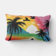 Transform your space with our stunning Lumbar Pillow, featuring a serene beach scene that evokes the peacefulness of sunrise or sunset. The sky is a vibrant tapestry of horizontal rainbow stripes, creating a breathtaking backdrop that infuses joy into any room. A warm yellow sun peeks over the horizon, casting a gentle reflection on the ocean’s surface, while elegant palm trees frame the scene, adding a delightful tropical flair.