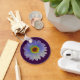 This pretty keychain features a photograph of a marigold flower that has been manipulated to create a beautiful flower with a mixture of colours from the rainbow. The flower is on a dramatic dark purple background.