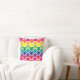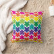Cascading rainbow meeples on white throw pillow.