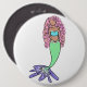 rainbow mermaid pink blue purple green black curly 6 cm round badge