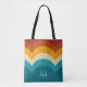 Rainbow Monogram Custom Name Retro Sunset Stripe Tote Bag