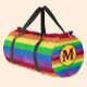 This rainbow monogram striped duffle bag includes two customisable monograms and names. This rainbow striped large duffel bag is great for your travel on vacation or for a weekend getaway!