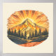 A radiant rainbow mountain sunrise scene that blends warmth with vintage outdoor charm. Golden sun rays burst behind a glowing peak, layered with soft clouds, forest silhouettes, and rolling hills in rich sunsoaked tones. Perfect for nature lovers, hikers, mountain souls, and anyone drawn to sunrise magic and mountain landscapes. This poster art captures that quiet moment when the world wakes up — bold, peaceful, and full of possibility.