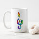 Polygonal, rainbow, bright musical key on white background. Polygon tattoo. Treble clef