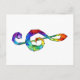 Polygonal, rainbow, bright musical key on white background. Polygon tattoo. Treble clef