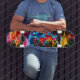 Ignite your ride with our striking rainbow neon paint splash skateboard design. Vibrant, fluorescent splashes of colour burst across a sleek black background, creating a bold contrast that is as eye-catching as it is dynamic. This design embodies energy, creativity, and the spirit of street art, making it perfect for skaters who love to stand out. Whether you're cruising the streets or showcasing your deck, the neon rainbow splashes will ensure all eyes are on you. Add an electric touch to your skateboarding style with this vivid, artistic masterpiece.