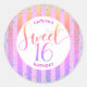 Rainbow ombre glitter script sweet 16 birthday classic round sticker