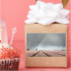 Rectangular photo sticker with a rainbow and dark clouds during a spring storm over a landscape with an old windmill and pink hyacinth flowers in the dutch Bulb Region in the Netherlands.