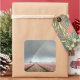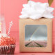 Square photo sticker with a rainbow and dark clouds during a spring storm over a landscape with an old windmill and pink hyacinth flowers in the dutch Bulb Region in the Netherlands.