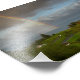 Photo print of a rainbow under some dark grey rain clouds over Kilauea Lighthouse on a big rock in the Pacific Ocean on the North Shore of Kauai, Hawaii, USA.
