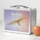 A personalised lunchbox featuring a barn owl with a textured rainbow background. Click on "Personalise This Template" to personalise this owl lunchbox by adding your name, or add a friend's name and buy it as a personalised gift. If you do not want any text, click on "Personalise This Template" and delete the text in the text box. The preview images shows how your product will look, so make sure it's what you want!