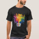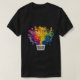 A vibrant burst of rainbow paint radiates from a white basket, mixing abstract spirals and bubbles. A bold artistic vibe for creative clothing and statement t-shirts.