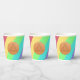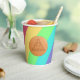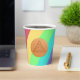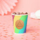Colourful paper cup, with game dalgona candy multiple triangle on the rainbow background