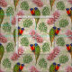 Australian Rainbow Lorikeets with pink grevillea flowers and leaves on a hand dyed background. Flowers are from my garden.