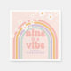 Retro inspired Nine is a Vibe 9th birthday napkins with hippie style pastel rainbow, and daisies