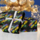 This exciting congratulations wrapping paper design features the message "CONGRATS" with the letters having a rainbow spectrum inspired gradient pattern look, along with a customisable name, and a colourful bursting fireworks inspired pattern on a dark background. Wrapping paper like this might be a fun way of wrapping a congratulatory present being given to somebody who has accomplished something important.