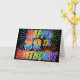 The front of this fun, eye-catching and exciting greeting card design features a colorful celebratory fireworks inspired pattern, along with the message "HAPPY 39TH BIRTHDAY!" having a multicolored rainbow like gradient pattern, on a black colored background. The inside features a custom greeting message, or could perhaps be cleared and left blank if it is desired to write a message by hand instead. A greeting card like this might be a happy, fun way to celebrate somebody’s 39th birthday. [~Z0000355]