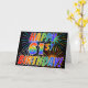 The front of this exciting, eye-catching and fun greeting card design features a colorful celebratory fireworks inspired pattern, along with the message "HAPPY 61ST BIRTHDAY!" featuring a multicolored rainbow like gradient pattern, on a black colored background. The inside features a customized greeting message, or could perhaps be cleared and left blank if it is desired to write a message by hand instead. A greeting card like this might be a fun, happy way to celebrate somebody’s 61st birthday. [~Z0000355]