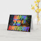The front of this fun, vibrant and exciting greeting card design features a colorful pattern inspired by celebratory fireworks, along with the message "HAPPY 73RD BIRTHDAY!" featuring a multicolored rainbow like gradient pattern, on a black colored background. The inside features a personalized greeting message, or could perhaps be cleared and left blank if it is desired to write a message by hand instead. A greeting card like this might be a happy, fun way to acknowledge somebody’s 73rd birthday. [~Z0000355]