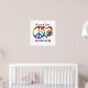 Share your love for the retro sixties and seventies with this rainbow coloured peace sign and heart and flower and the words - Peace Love Flower Power.