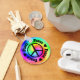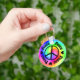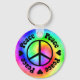 Peace & Love keychain - peace sign and hearts on a rainbow spiral background.