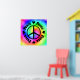 Peace & Love poster - peace sign and hearts on a rainbow spiral background.