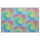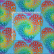 A pattern of hearts formed out of peace symbols in rainbow colours.